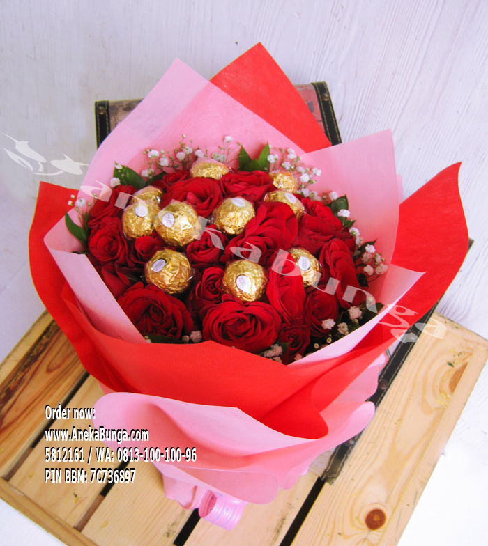 30 Stem Roses Red & Cokelat 10 pcs (Ferrero)