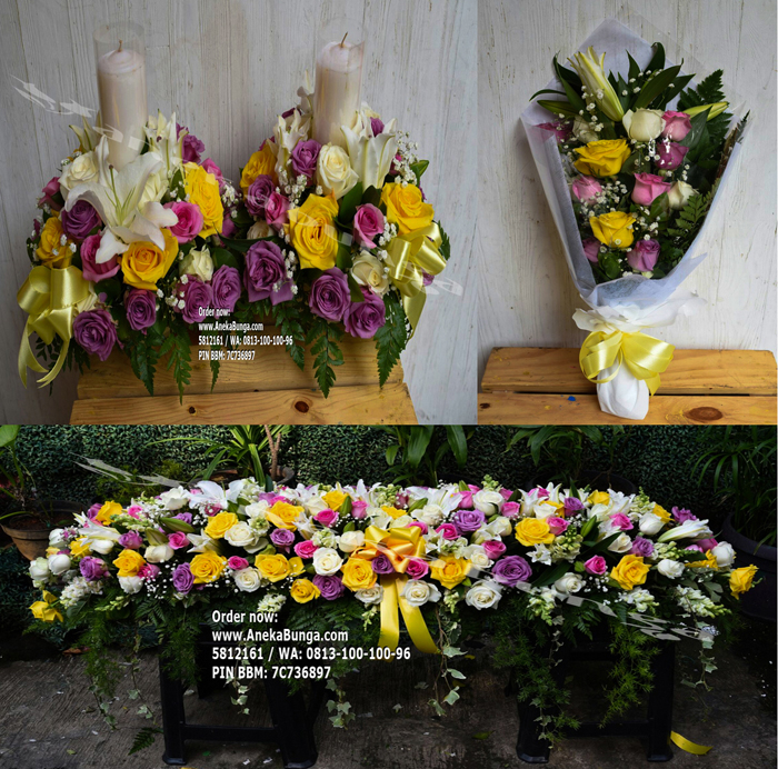Bunga Rangkaian Peti, 2 bunga rangkaian lilin, 1 bouquet.