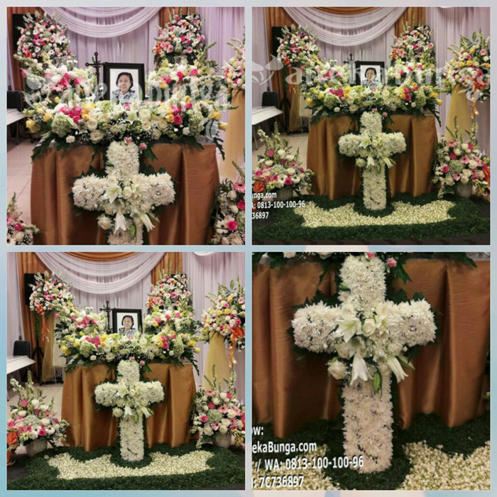 4 standing1 bunga salib1 m Rangkaian di meja2 vase di meja2 vase di lantai bawahmelati di lantaidaun pandan